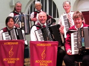 Horsham Accordion Band Horsham Accordion band (H.A.B.) was formed in 1987 by local accordion teacher John Coles. Their bookings include French, German, Italian, Scottish etc themed events, private parties, residential homes listen & sing-along sessions, folk dances, churches, various indoor/outdoor venues and more.